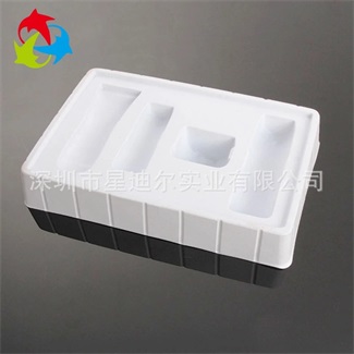 产品特点:吸塑加工厂采用白色PS植绒片材按照客户提供的实物而设计定制的样式经吸塑工艺热成型加工后形成的吸塑制品,本款产品环保无公害,尽显高端大气,为产品增值提升档次。PS植绒吸塑内托在运输过程中起到很好的保护作用,避免在运输过程中因碰撞、挤压而导致产品变形、损坏,从而影响公司形象。