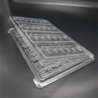 产品特点:本款产品是由深圳吸塑加工厂采用透明PET材质按照客户提供的实物而设计定制的样式经吸塑工艺热成型加工后形成的塑料制品,光模块吸塑托盘本款产品环保无公害,尽显高端大气,为产品增值提升档次。光模块吸塑托盘在运输过程中起到很好的保护作用,避免在运输过程中因碰撞、挤压而导致产品变形、损坏,从而影响公司形象。
